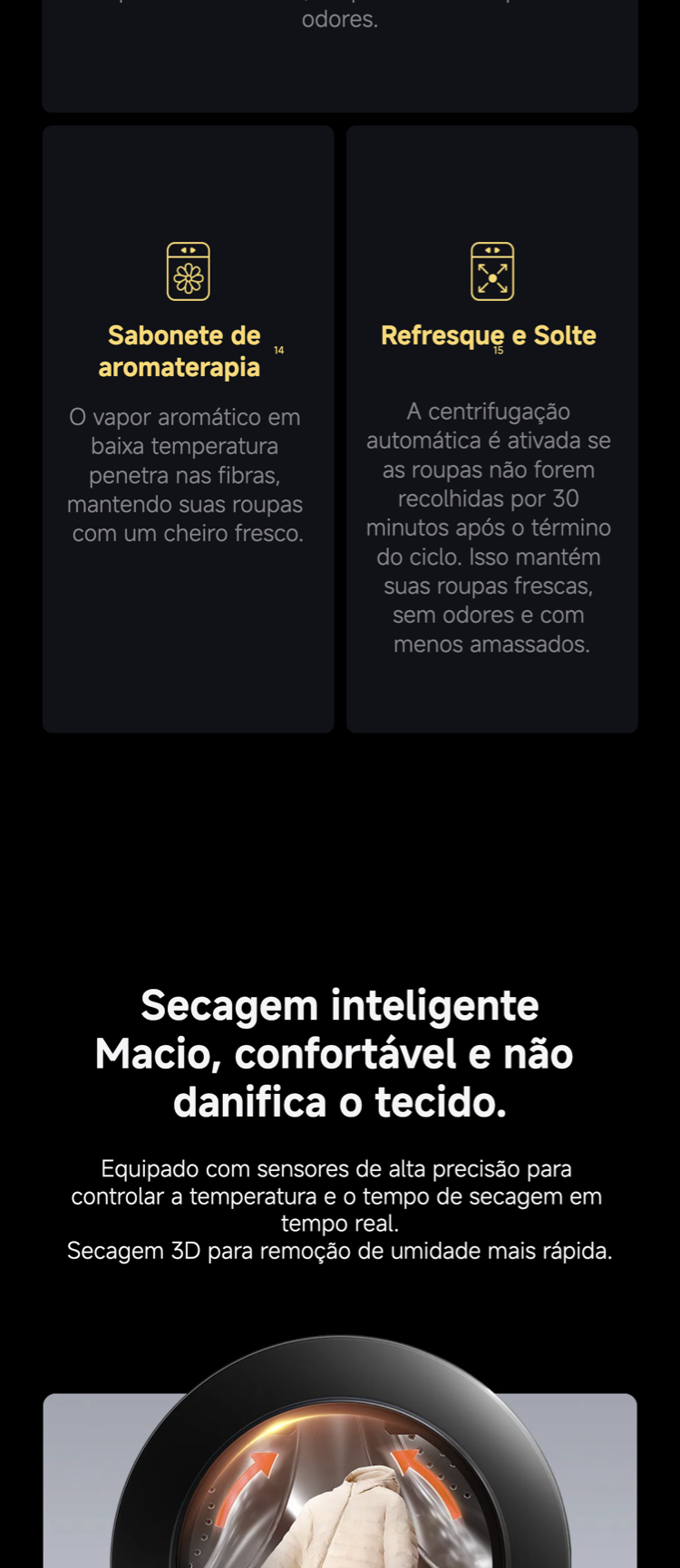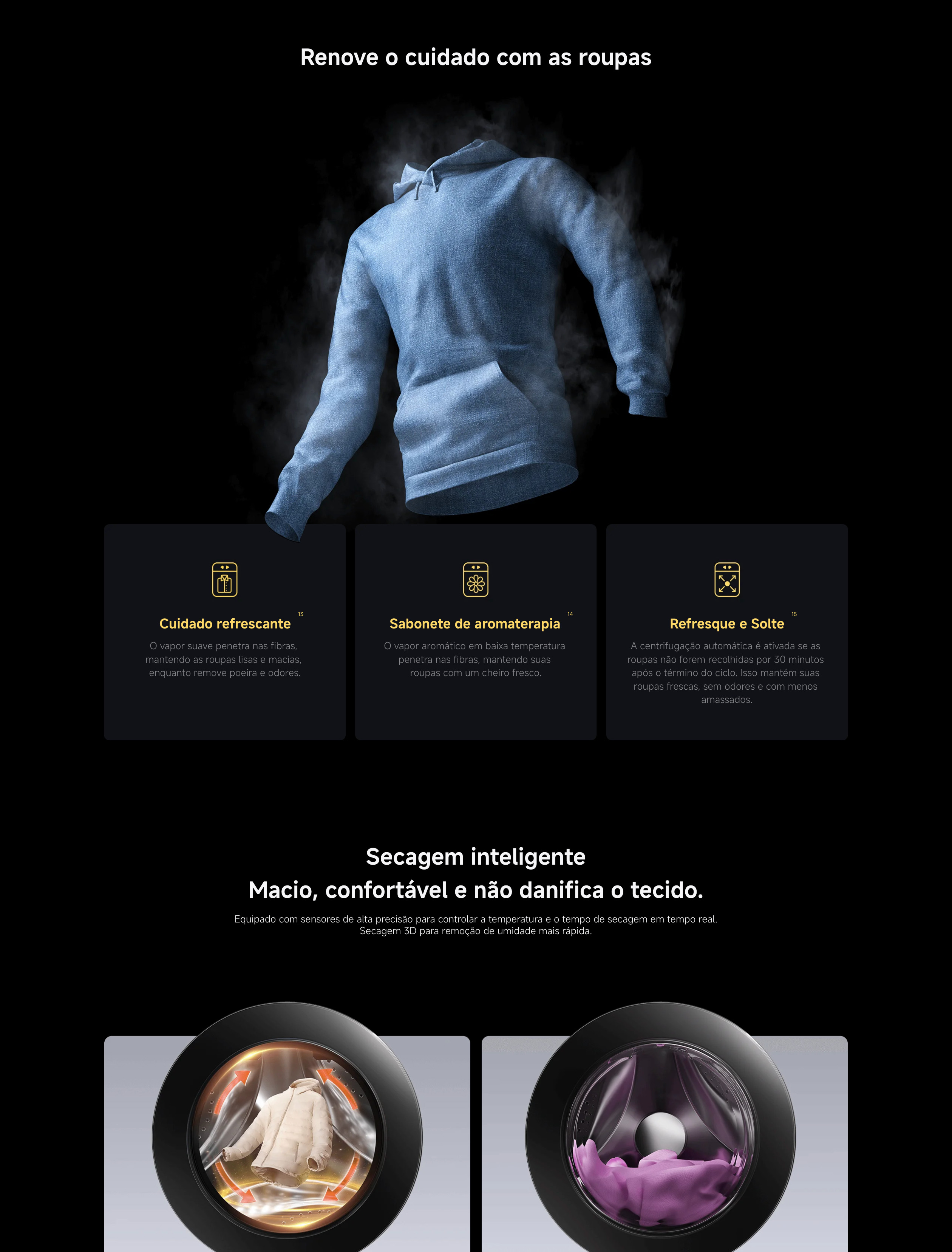 Capacidade de 9 kg para lavagem e até 6 kg para secagem