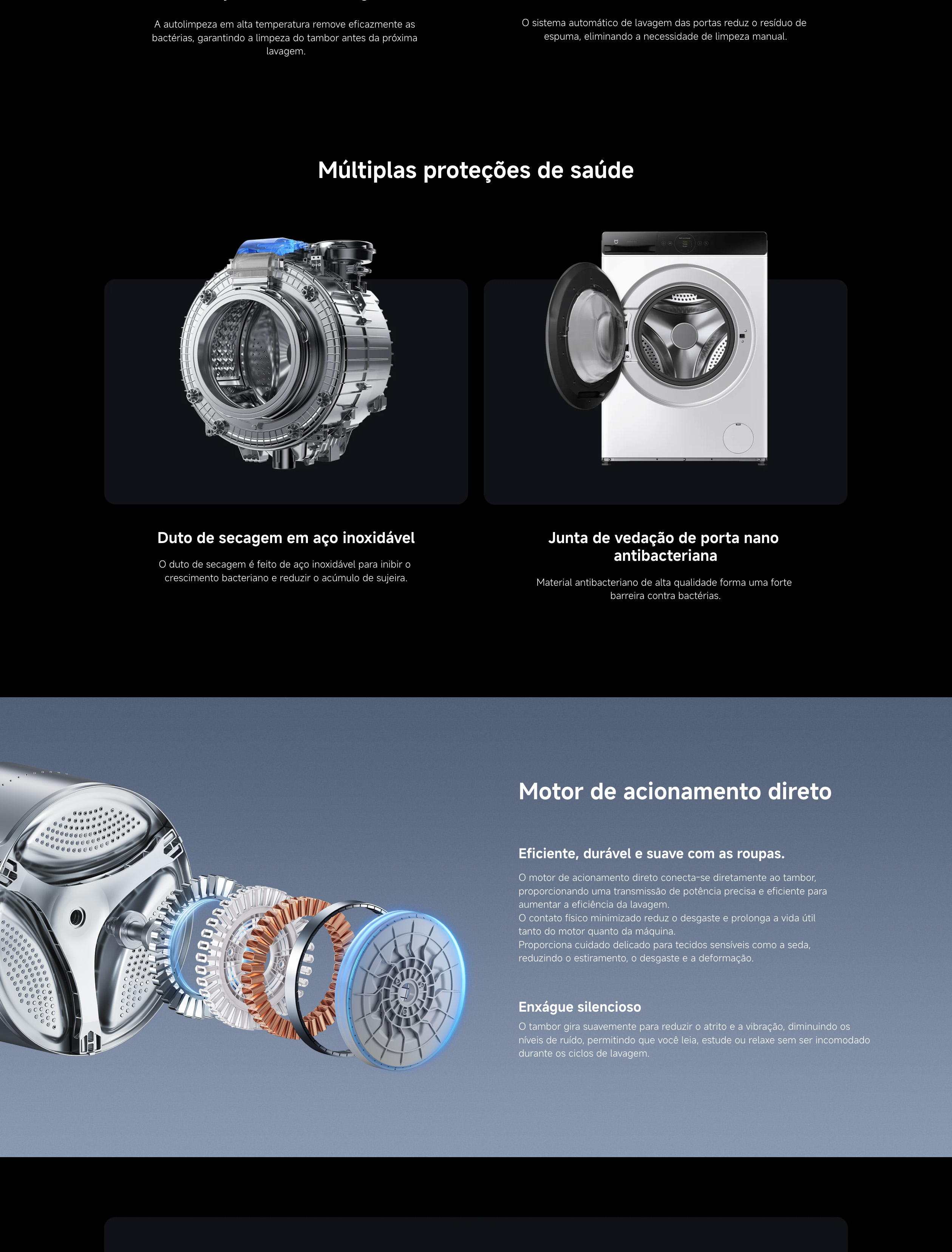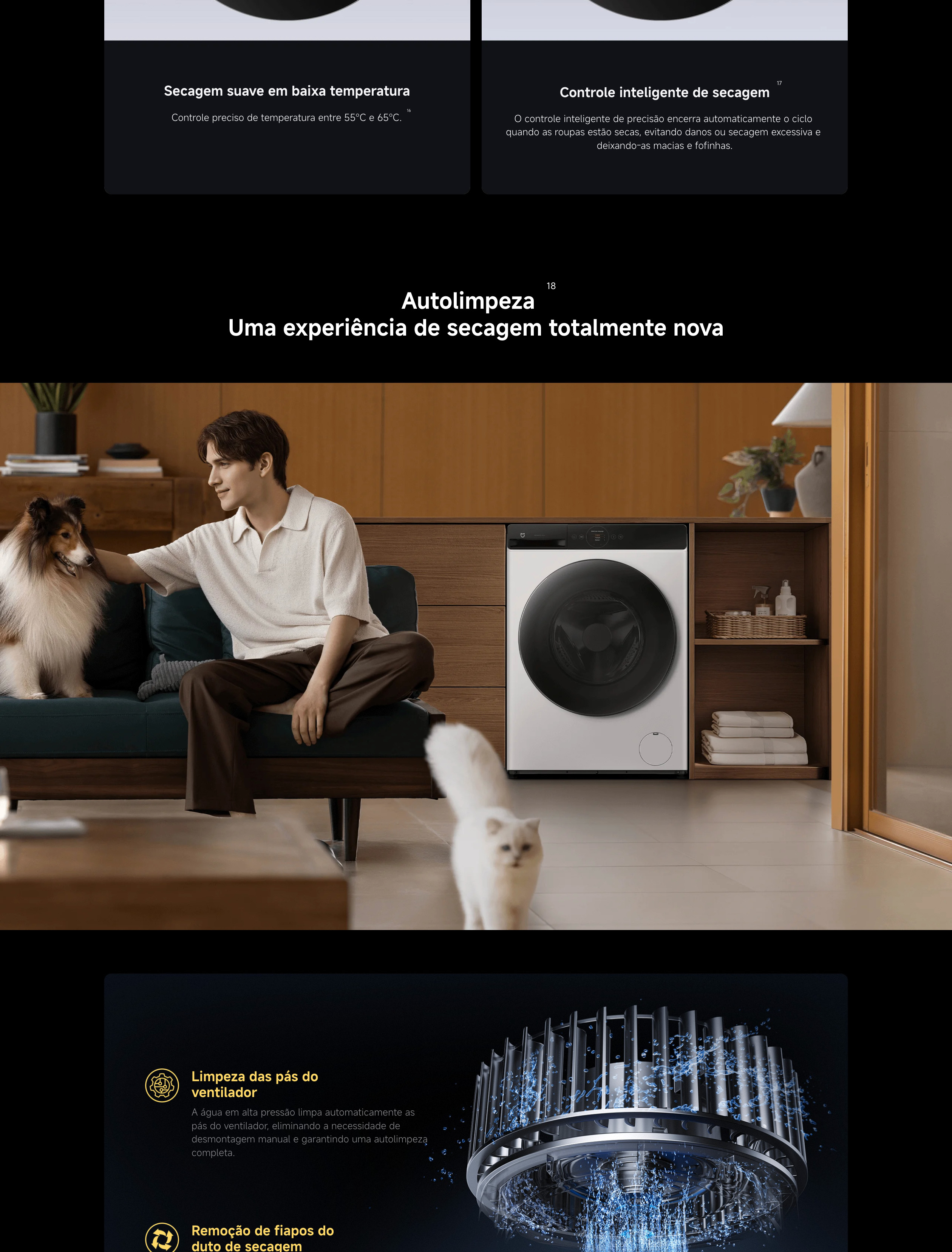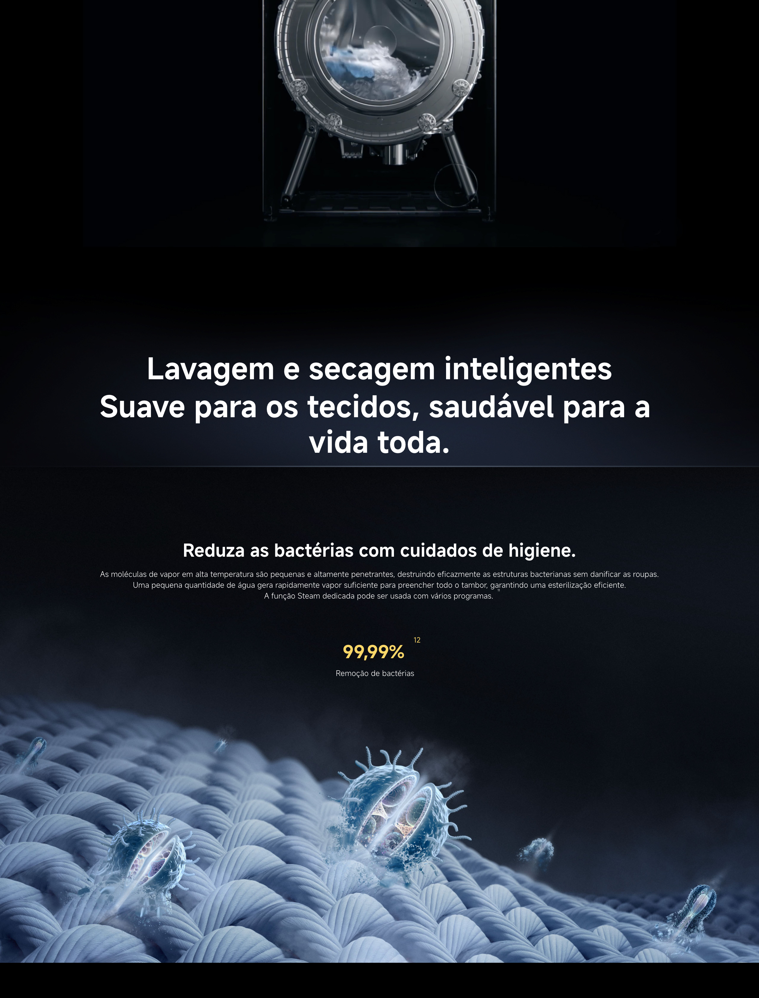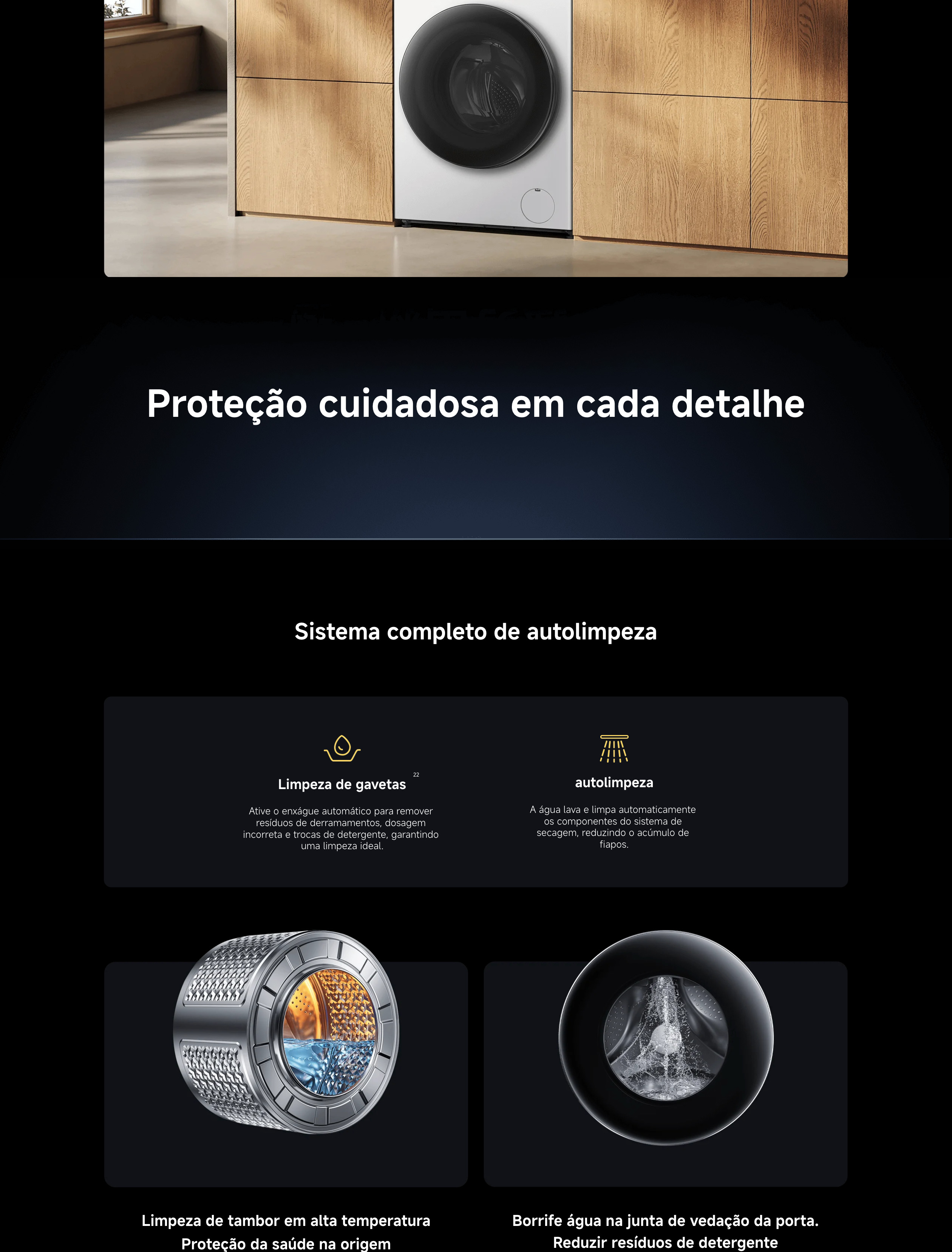 Função de auto-limpeza para tambor e gaveta de detergente