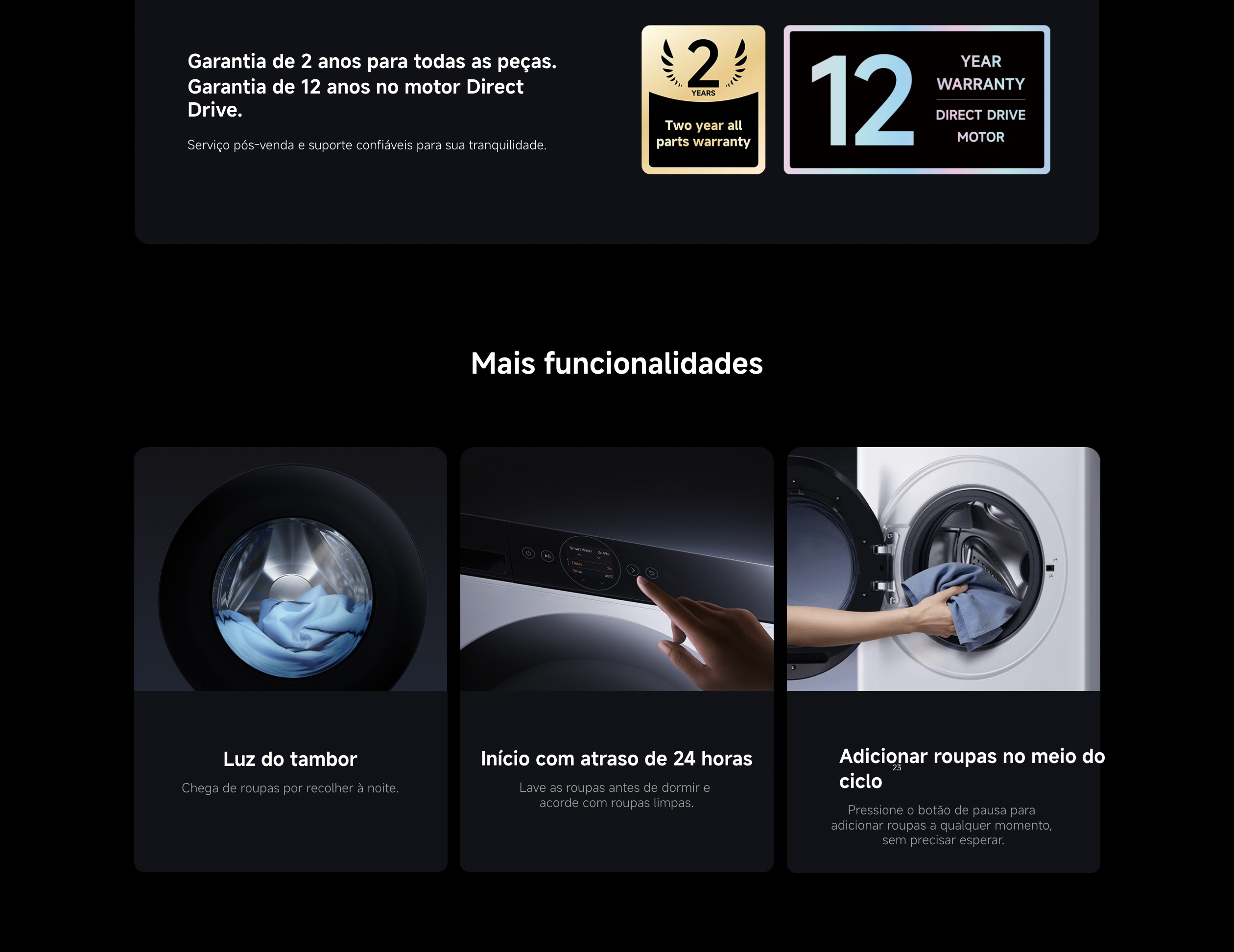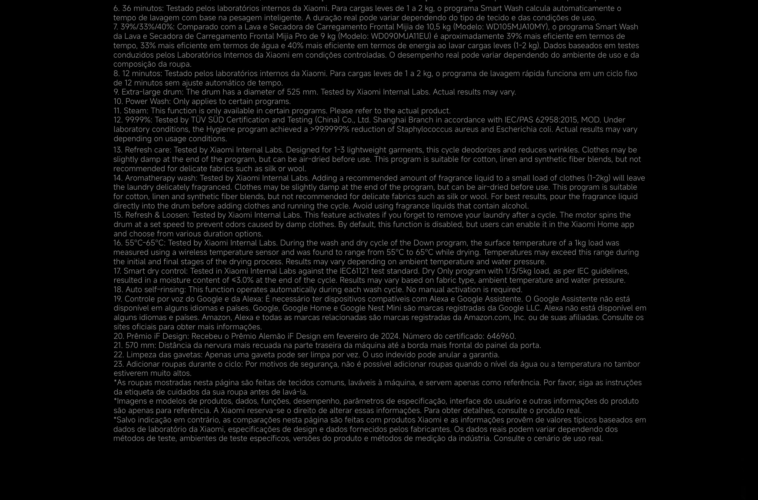 Ciclo rápido de 12 minutos ideal para pequenas cargas