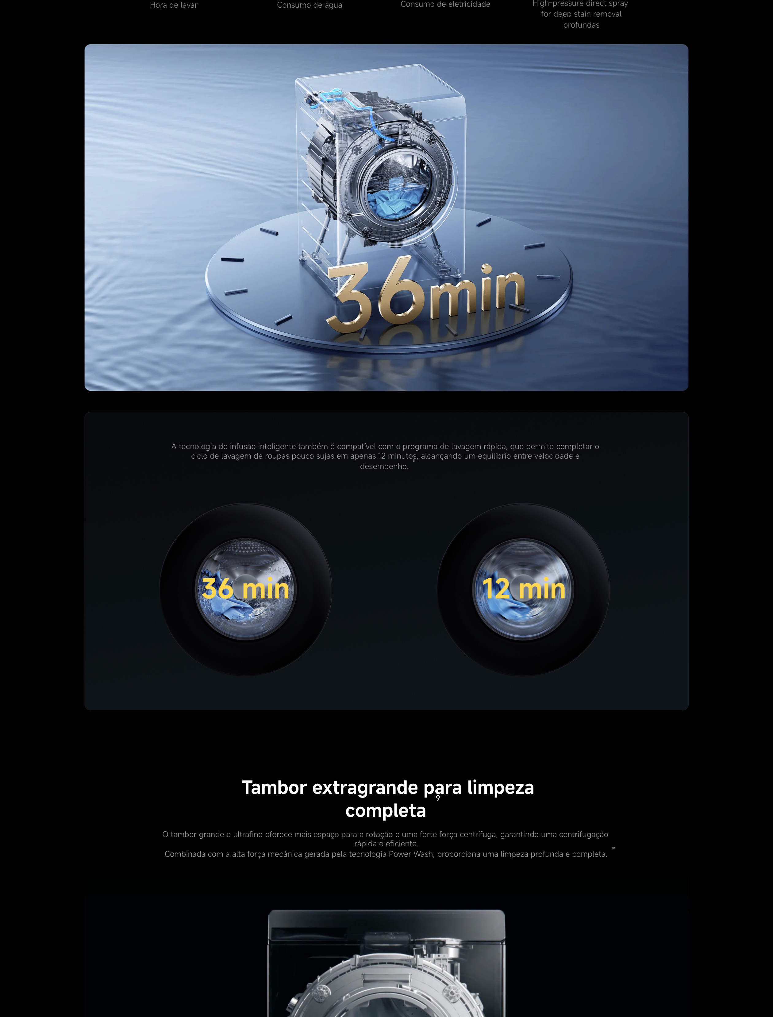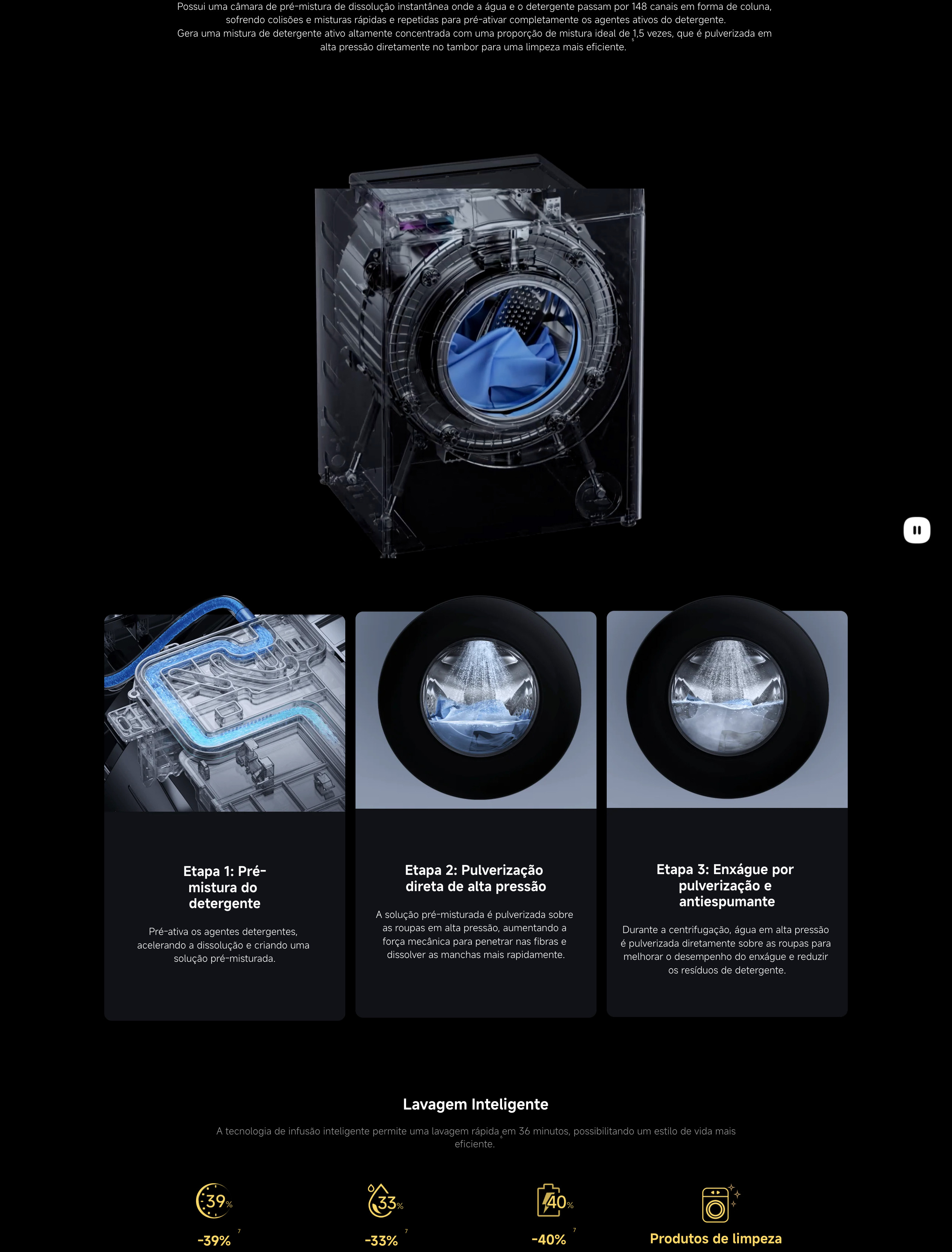 Programa Smart Wash de 36 minutos para limpeza rápida e eficaz