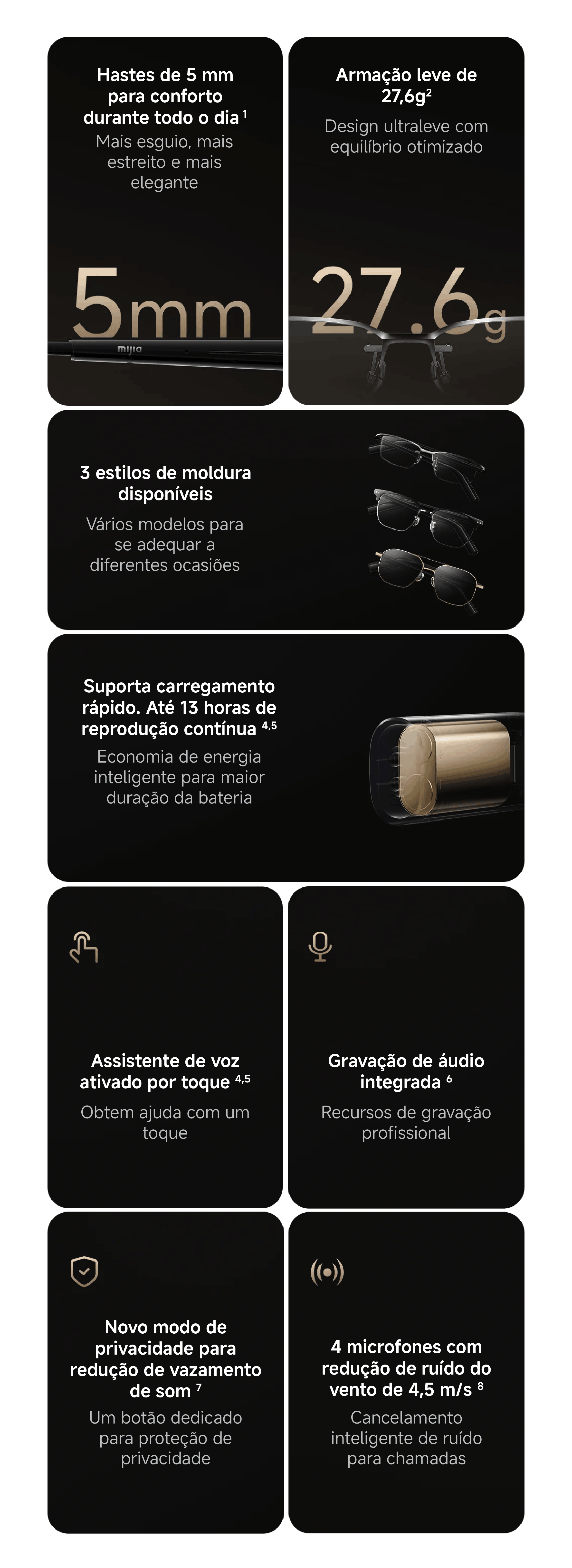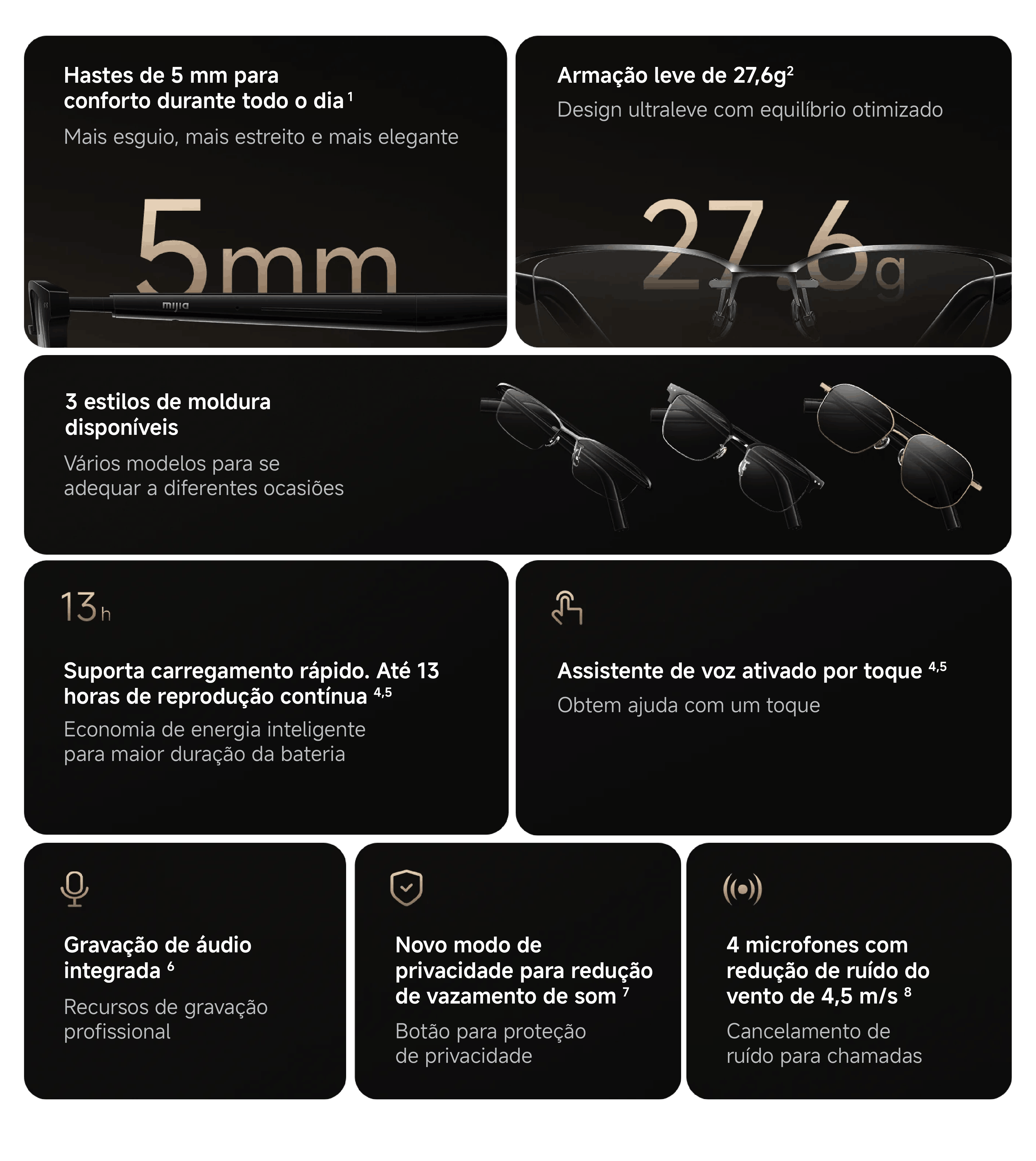 Áudio integrado com tecnologia open-ear