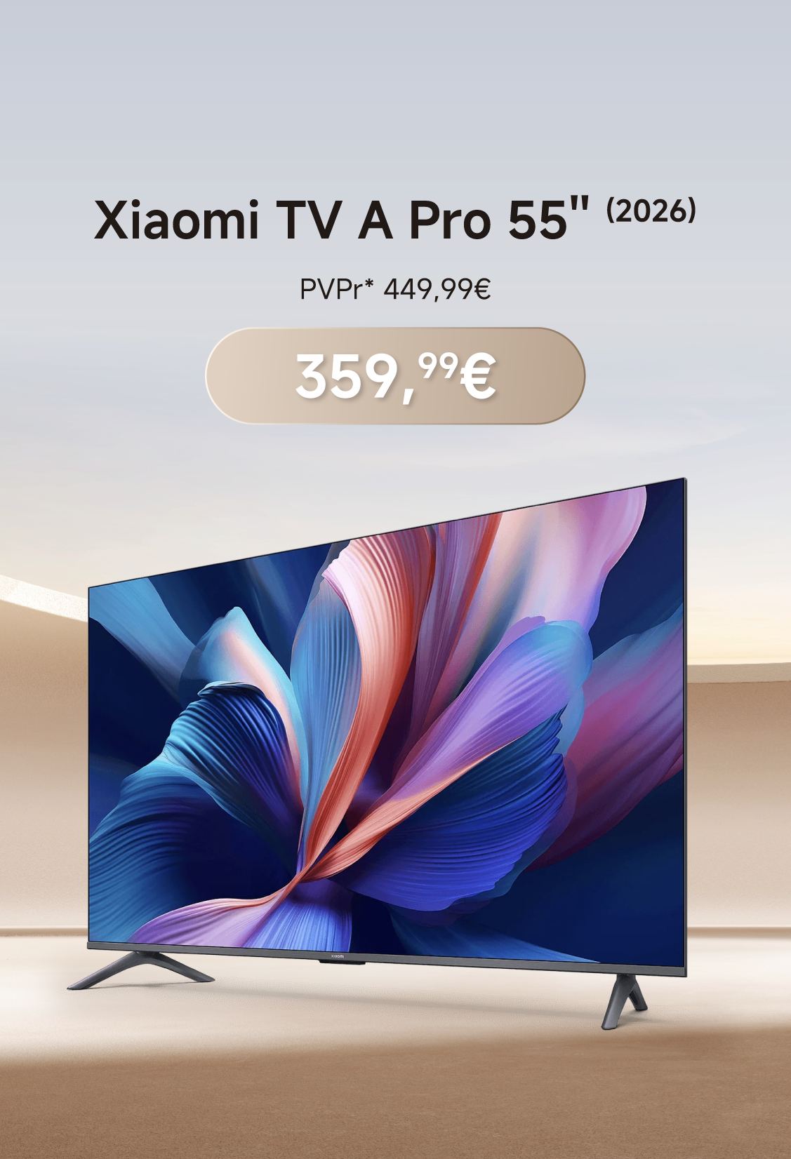 1Novidade- 13% sobre PVPr*Xiaomi TV A PRO 65'' (2026)Preço Especial 519,99 € PVPr* 599,99 € -